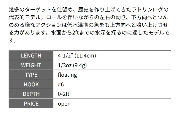 4-1/2インチ(11.4cm) 1/3oz(9.4g) フローティング フック#6
