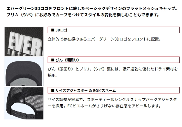 エバーグリーン E.G.フラットメッシュキャップ